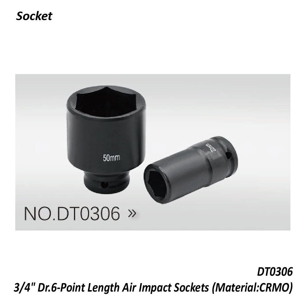 3/4" Dr.6-Point Length Air Impact Sockets (Material:CRMO)